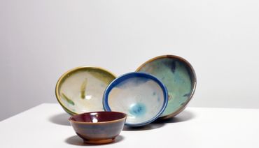 Priced very reasonably, custom colors sizes and forms. typically small to mid-size bowls $15 to 45$, Vases range from 25$ to $225.